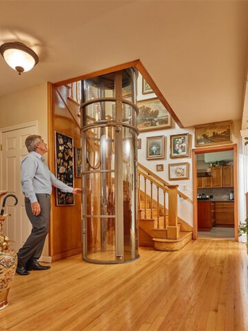 Ideal para casas novas e existentes devido ao espaço mínimo necessário para acomodar o elevador.